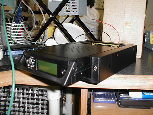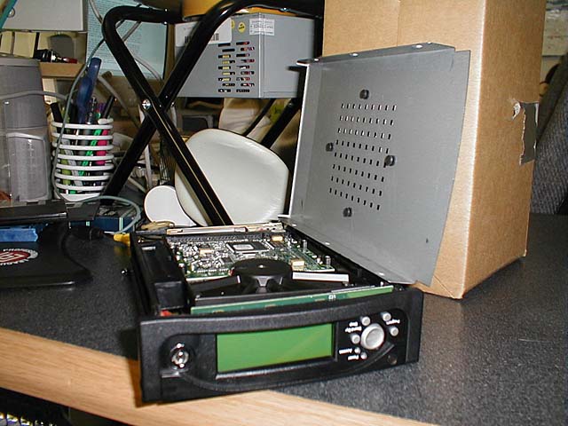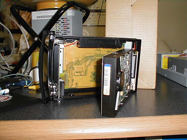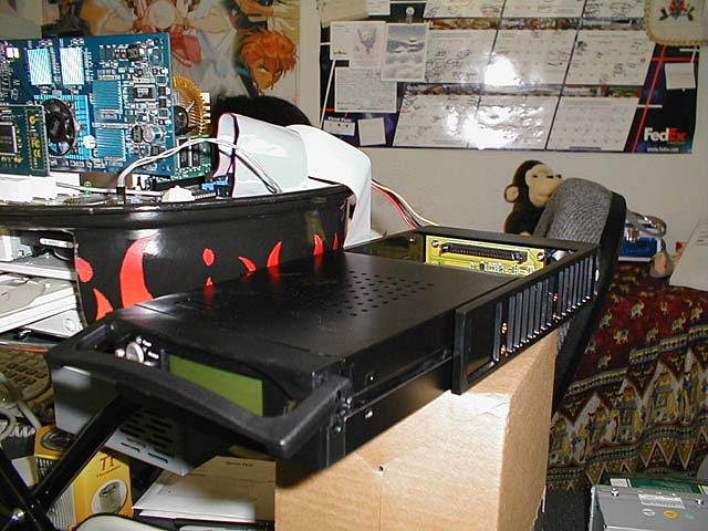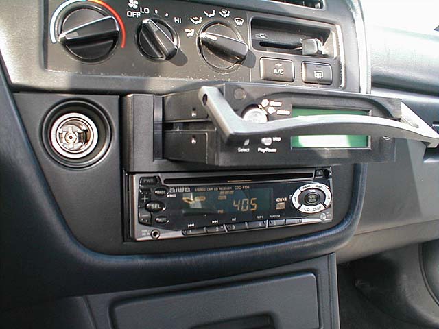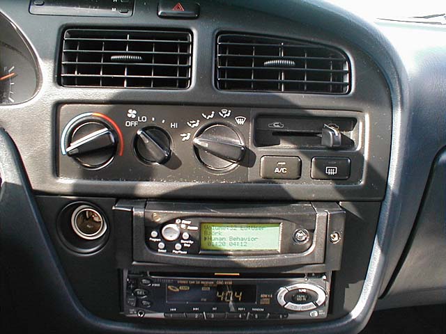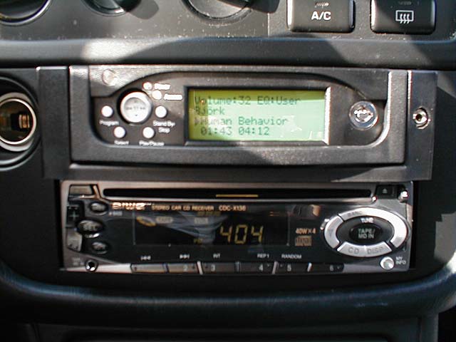 Funny thing about digital cameras... I still don't "develop" the pictures much more often than a reglar camera :) These pics have been sitting in my camera since March hehe. Oh well. Tomorrow (5/26/01) I'm going to re-install my Neo35 for a cleaner installation. The Neo is LONG so I didn't have enough room to stick it in all the way. Me and my dremel are going to fix that tomorrow :) (whhhhiirrrrr!!) The Neo35 is a standard-sized IDE hard drive based mp3 player. The unit reminds me of those $19 removable drive bays you can buy for your computer. ... because it actually is!! :) The kit comes with a PC Dock and a Car Dock. When at home, you dock the Neo35 into your PC and copy the songs over to it. The Neo35 shows up as a regular drive letter - it's a regular hard drive after all. I have a 40 GB Maxtor hard drive and have only 4 gigs of songs on it at the moment - most of them songs from my own CD's that i ripped to mp3 myself. I now have my entire CD collection on my Neo35 and have 36gigs to spare!! Oh!! I almost forgot to tell you where to buy it!! I bought my Neo35 at http://www.FunMP3Players.com - I bought it when the price was $280, but since then, the manufacturer has raised the price and forced the seller to sell these units at $355 now. Oh well, supply and demand i suppose.
