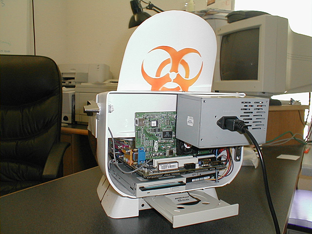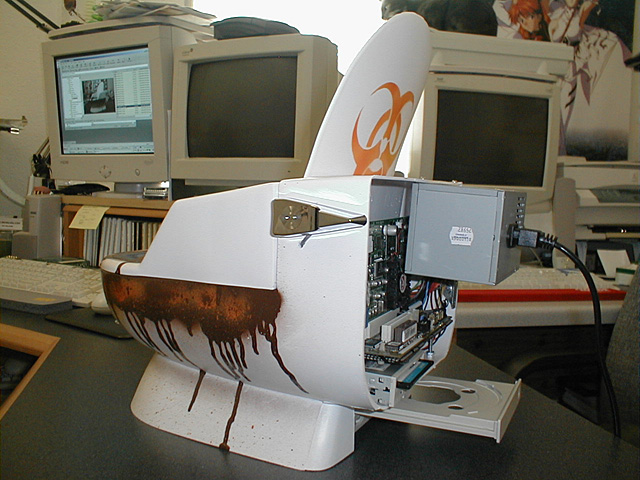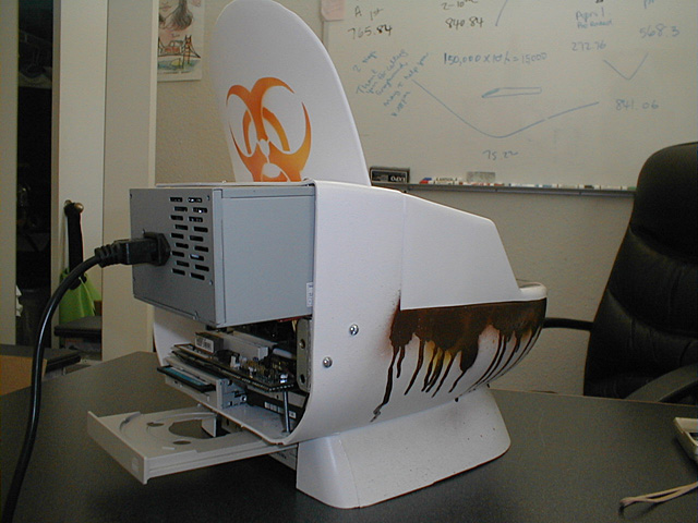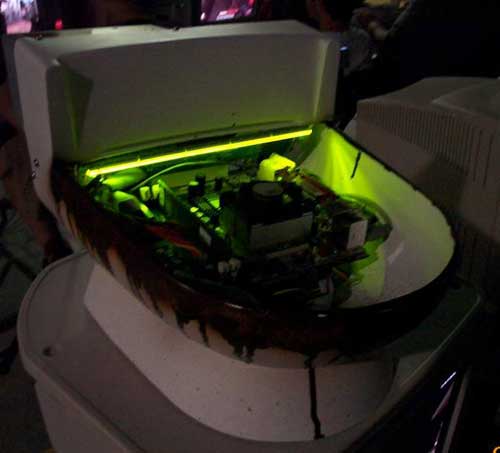 ToiletPC at QuakeCon 2001 taken in the dark. I used a long green LED light