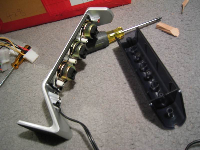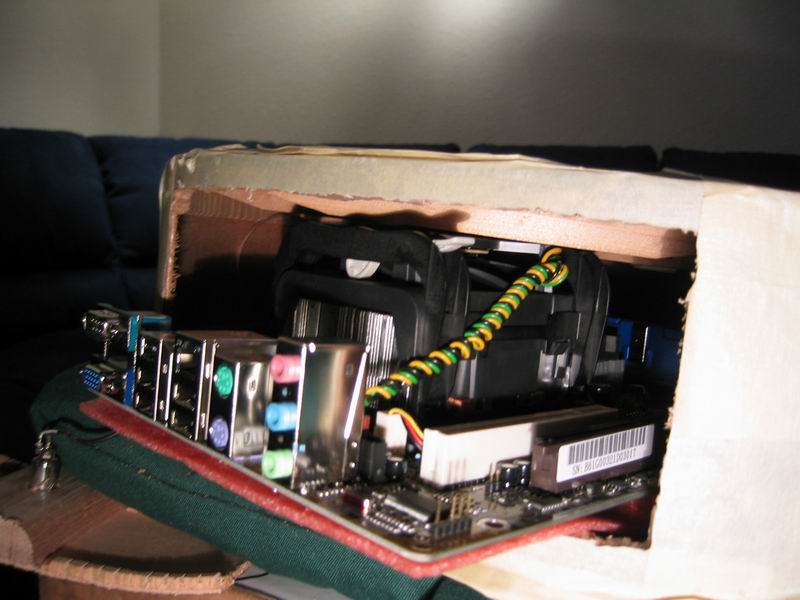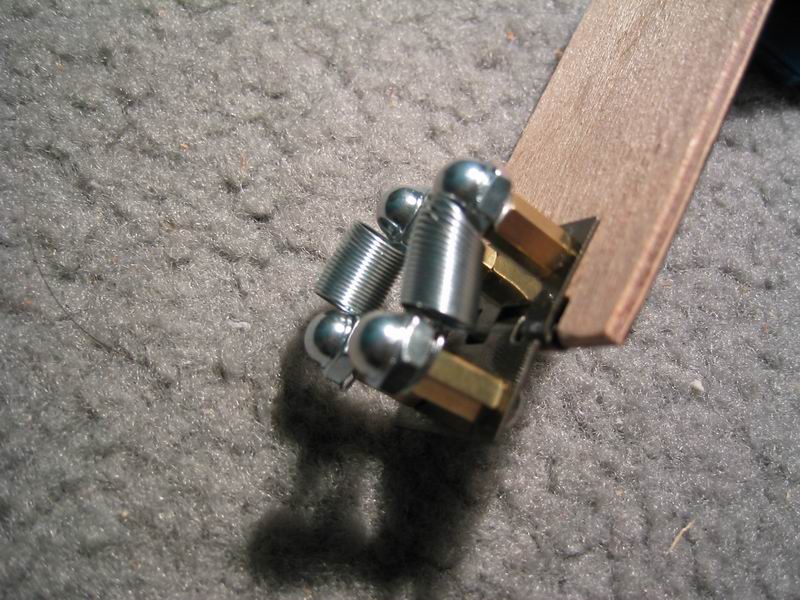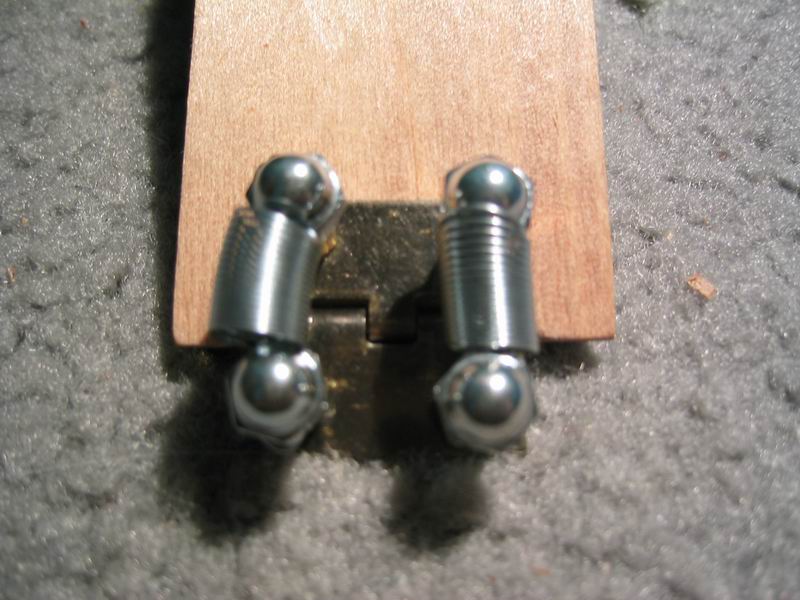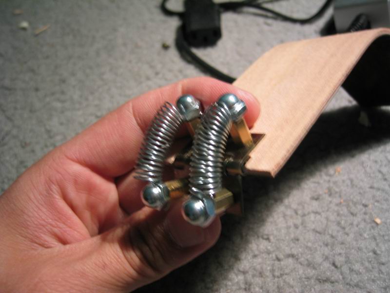 hinge made from springs, nut caps, and spare motherboard stand-offs (resourceful, yes?) |