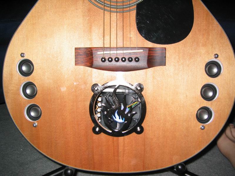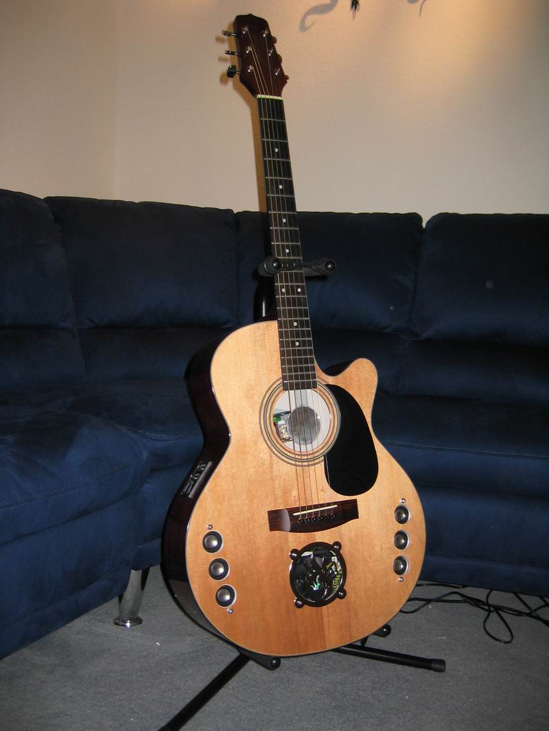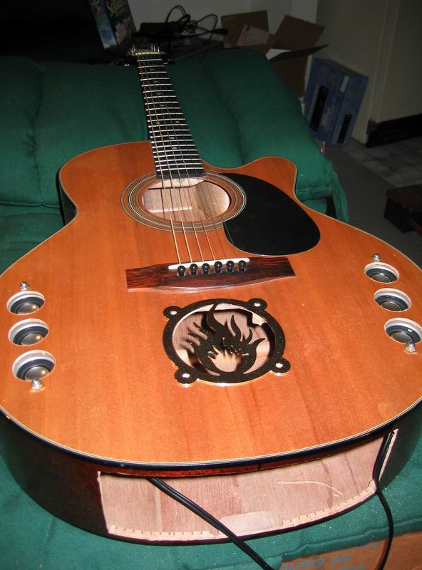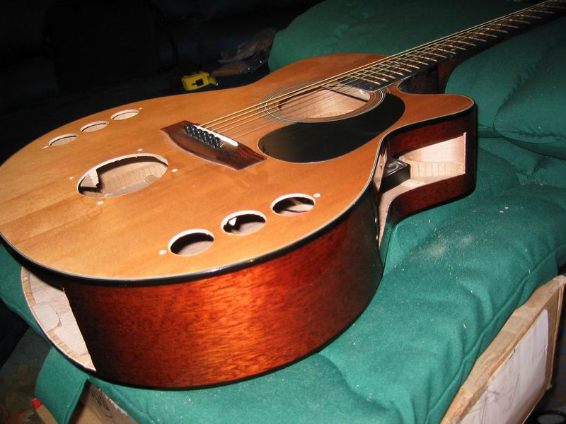 Some pics of the guitar with holes cut out |